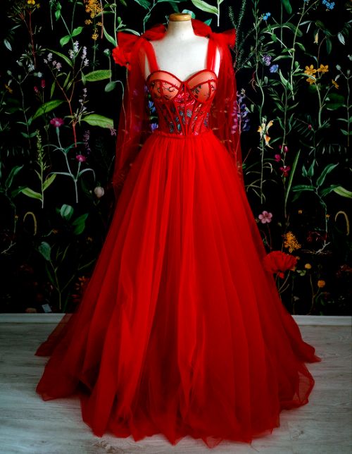 Red Prom Dress Tulle Evening Gowns S2119