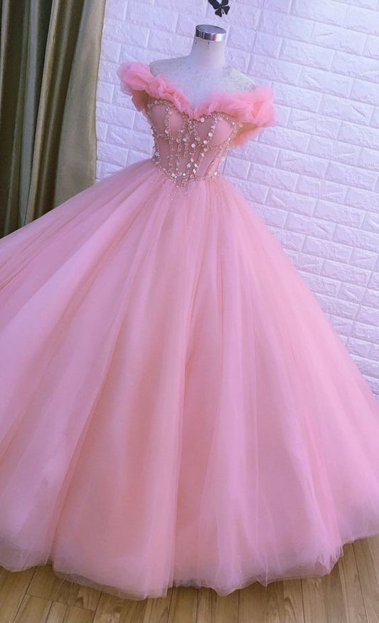 ball gown prom dresses, floor length prom dresses, pink evening dresses, a line formal dresses S1826