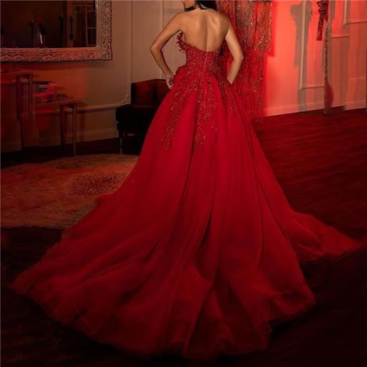 Red tulle dress Red Floor Length Prom Dresses Vintage Sweetheart Tulle Prom Dress S1821