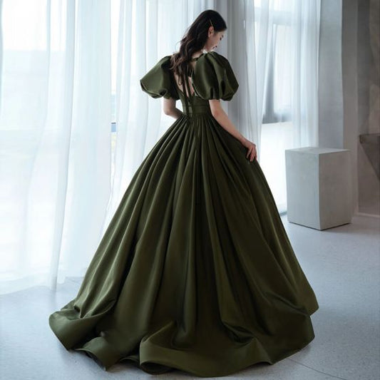 Classic Satin Quinceanera Dress, Green evening dress with belt S1278