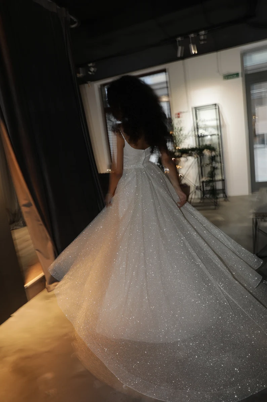 A-Line Wedding Dresses Tulle Sequined Sexy Sparkle & Shine Prom Dresses S1296
