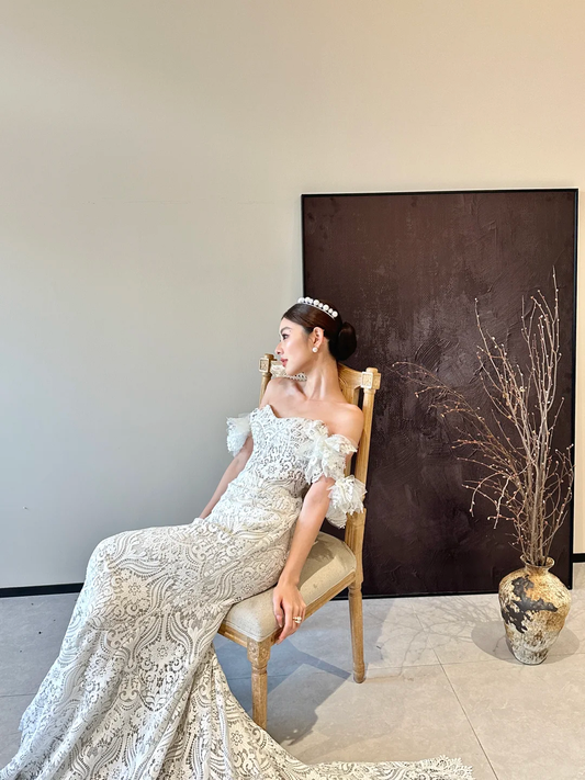 White tube top lace waist slim fishtail sexy long dress bridal gown R6058