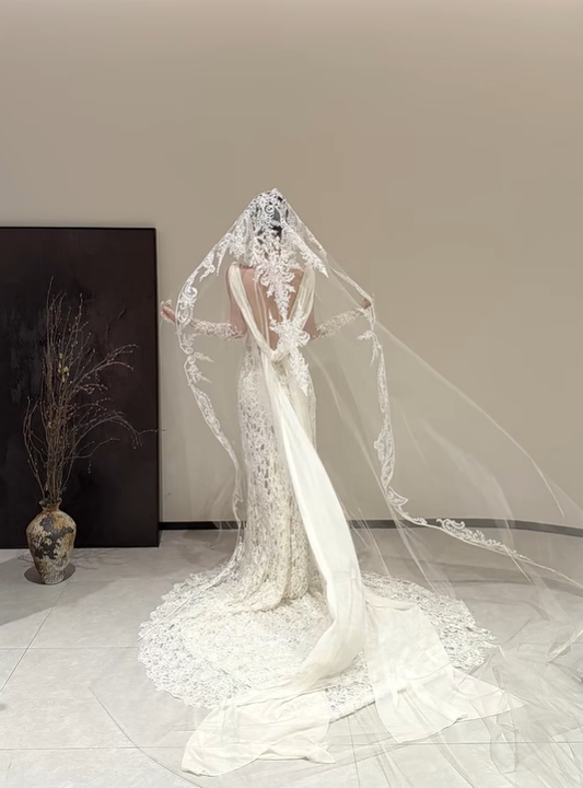White lace top slim fit puffy skirt tulle long dress bridal gown R6064