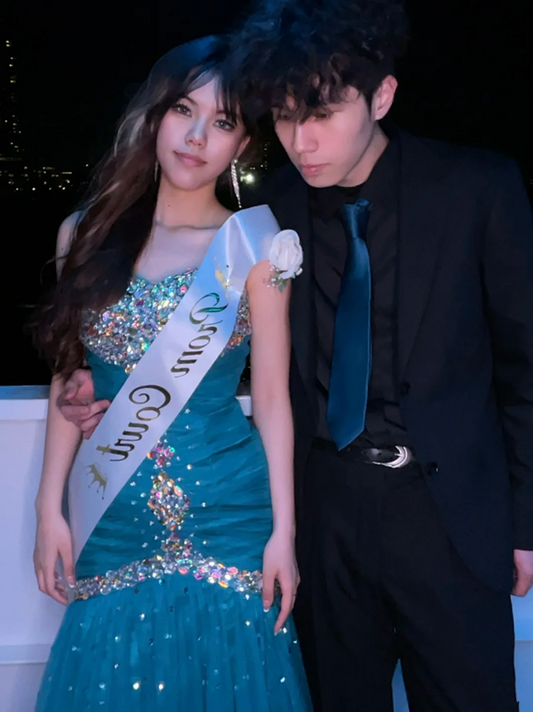 Green suspender satin waist slim hip sexy long skirt ball gown R6068