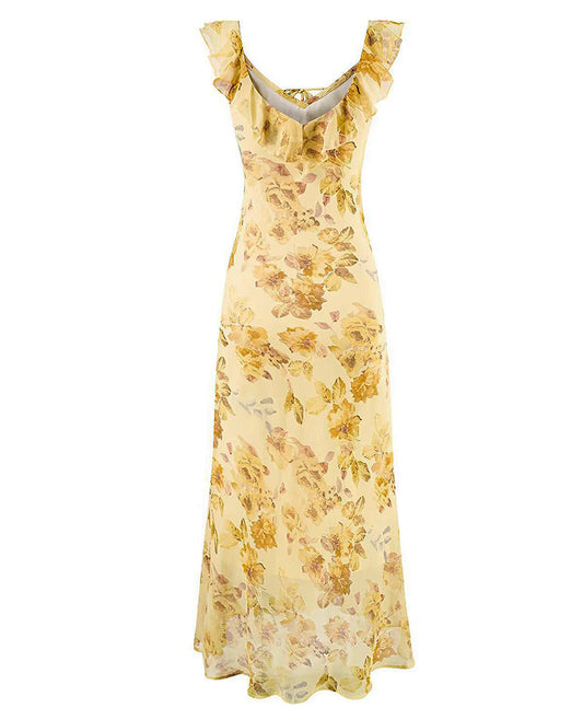French yellow floral ruffle dress 2025 new temperament long skirt R2597