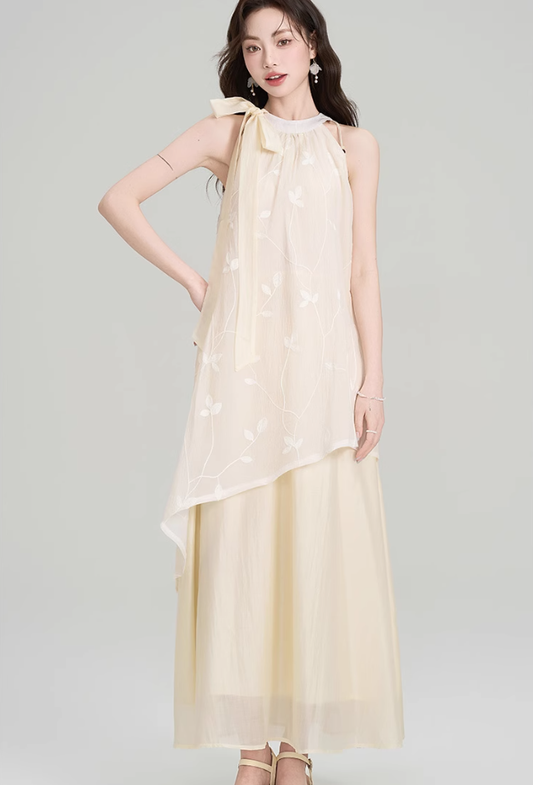 French style beautiful unique sleeveless halter dress holiday style irregular long skirt R2386