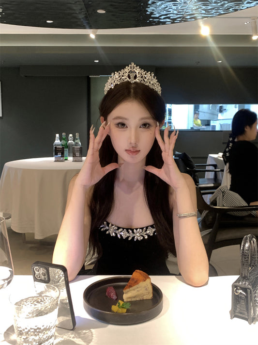 Birthday party dress niche high-end luxury temperament sexy black tube top dress R1790