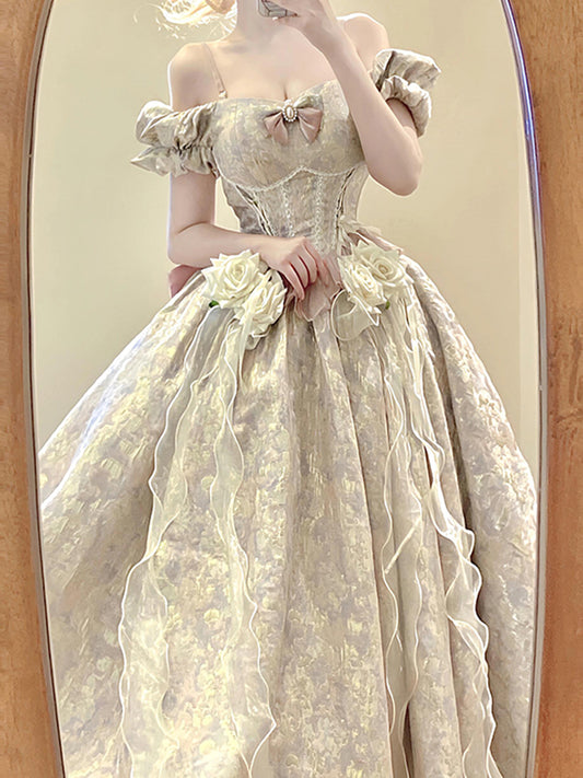 Tana Manor Retro Lolita Three-Dimensional Rose Long Skirt Heavy-Duty Dress Princess Skirt R1694