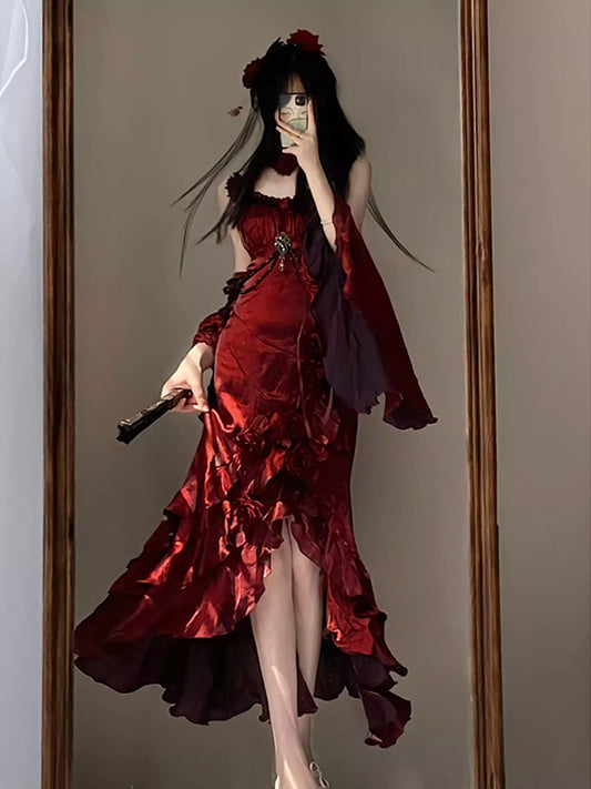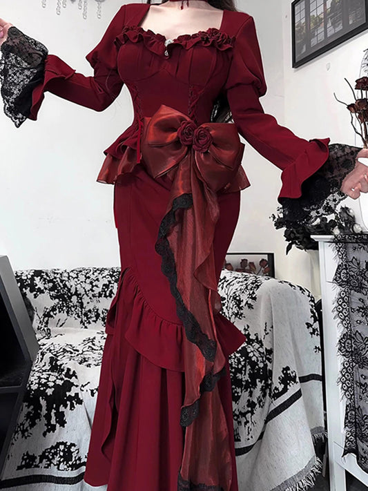 Red rose dress lolita fishtail skirt Lolita elegant goddess royal sister R1689