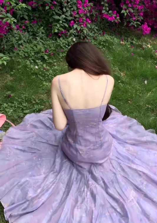 Purple suspender dress 2025 new tea break French style beautiful unique temperament beach dress R0459