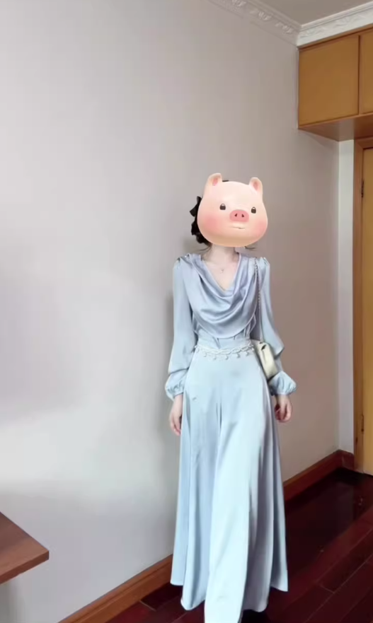 Holiday style blue v-neck halter dress unique and beautiful waist temperament long dress 2025 new R0454