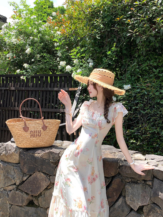 French romantic floral dress women's summer unique beautiful long dress R3870