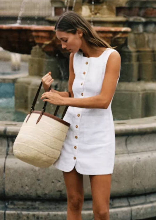 Dress White French Sleeveless Single Breasted Slim Fit A-Line Short R2910