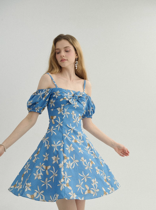 Jasmine French floral dress small fresh sweet puff sleeve short skirt R2763