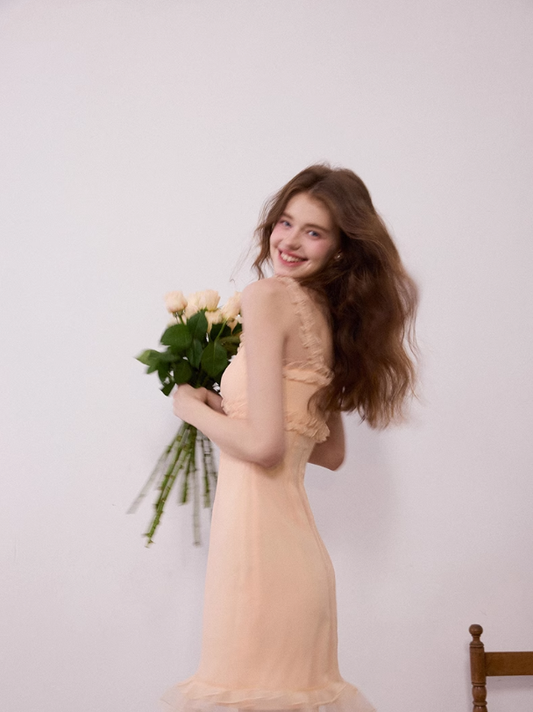 French ruffle dress high-end mini skirt floral skirt holiday style R2757