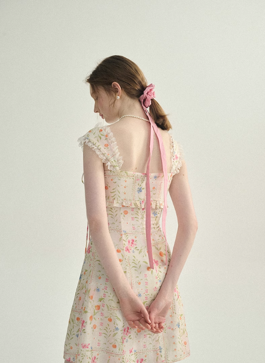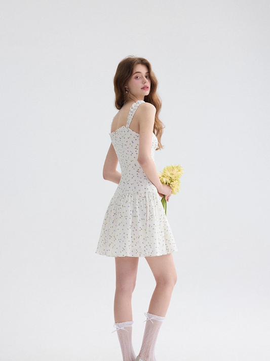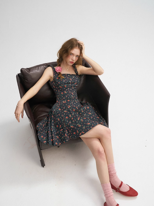 French Retro Floral Sling Dress Sleeveless Short Skirt R2760