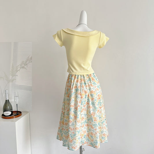 Floral cotton skirt A-line midi skirt R2037
