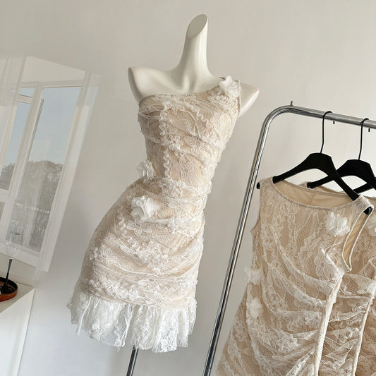 Exclusive handmade three-dimensional flower waist slimming hip dress R2045