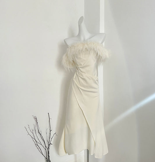 White one-shoulder dress 2025 new style figure-hugging dress R2031