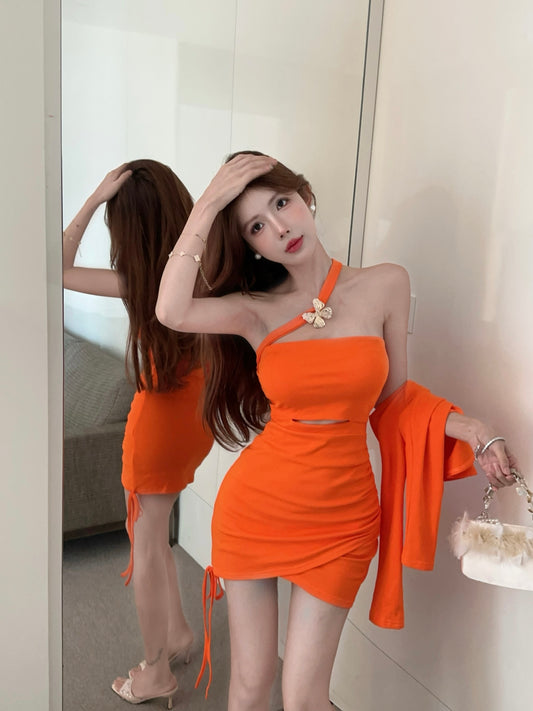 Niche design dress new style for women in summer with slim waist and short halter neck A-line skirt R4417