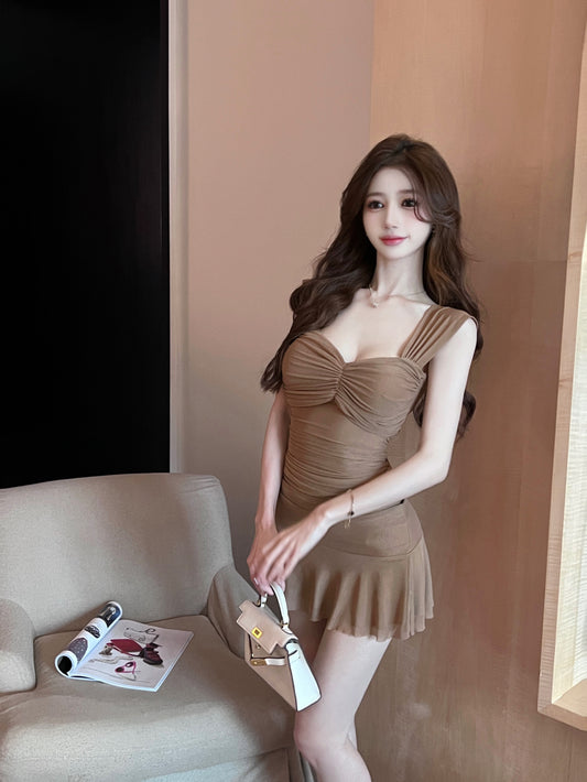 Gentle suspender chiffon dress women's summer new high waist medium length fishtail skirt R4460