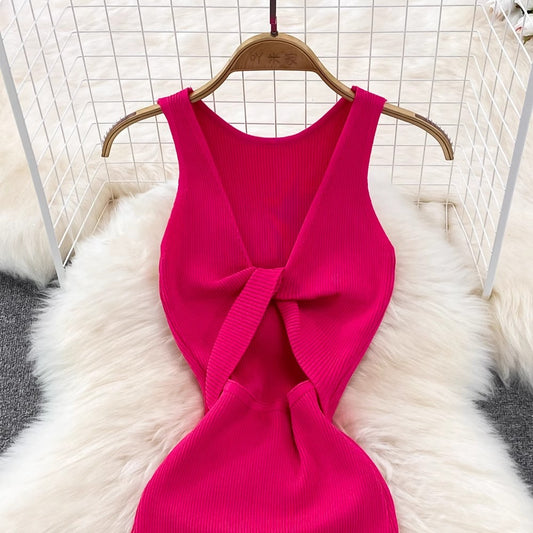 Sexy Style Tight Sleeveless Knitted Hip Dress S3917