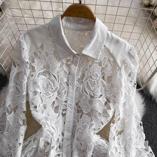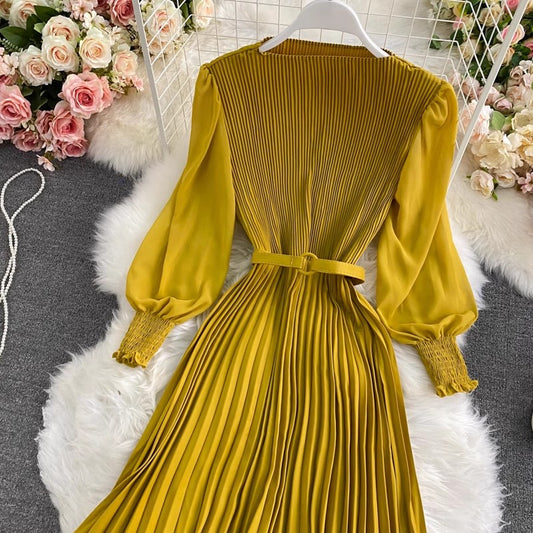 Bohemian white long skirt lantern sleeves square neck chiffon A-line skirt dress S3916