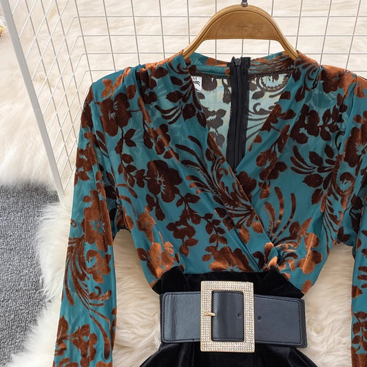 sexy off-shoulder velvet high slit hip-covering dress S3918