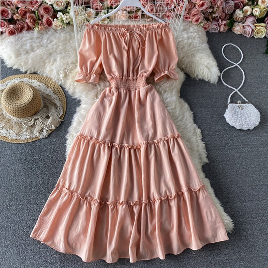 Spring Party Dress Women Off Shoulder Layer Ruffles Slim Chiffon S550