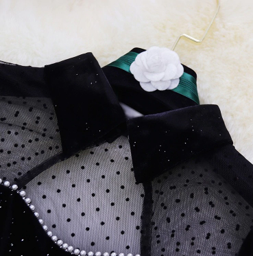Elegant Sequins Velvet Mesh Long Sleeve Party Dress S542