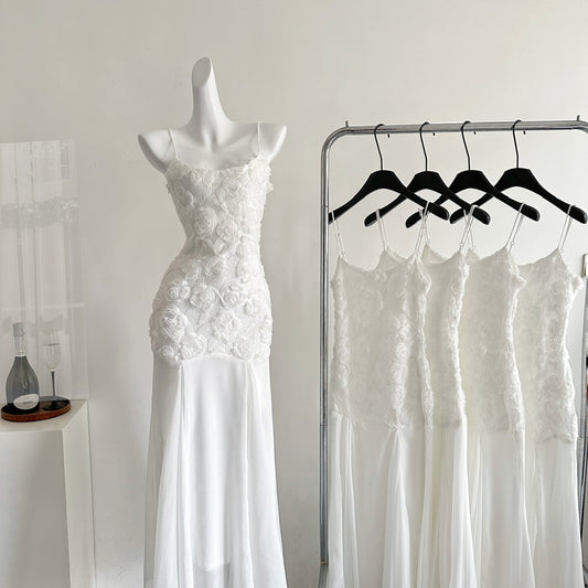 Pearl White 2025 New French Rose Suspender Skirt Waist Dress Fishtail Skirt R2067