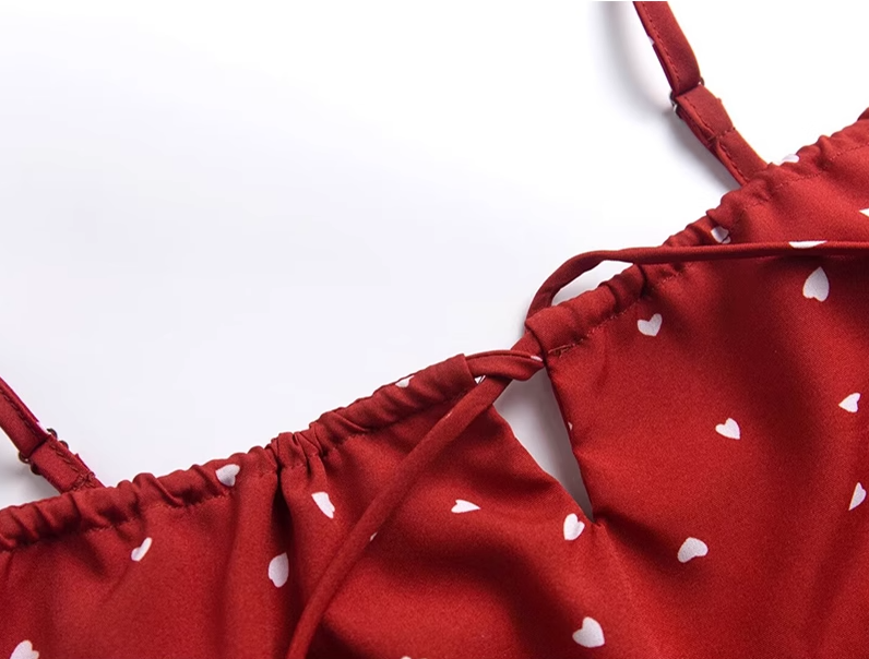 2025 Summer New Red Polka Dot High Waist Vacation Small A-line Suspender Dress R0965