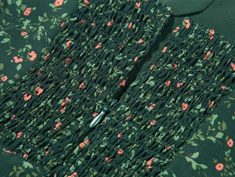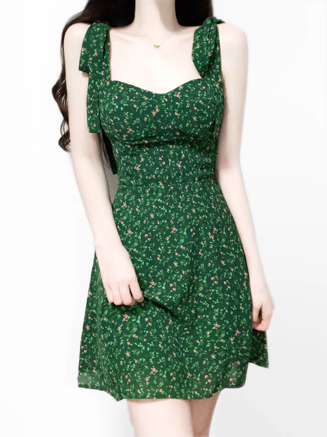 2025 Summer New Retro Platycodon Floral Green Holiday Short Suspender Dress R0906