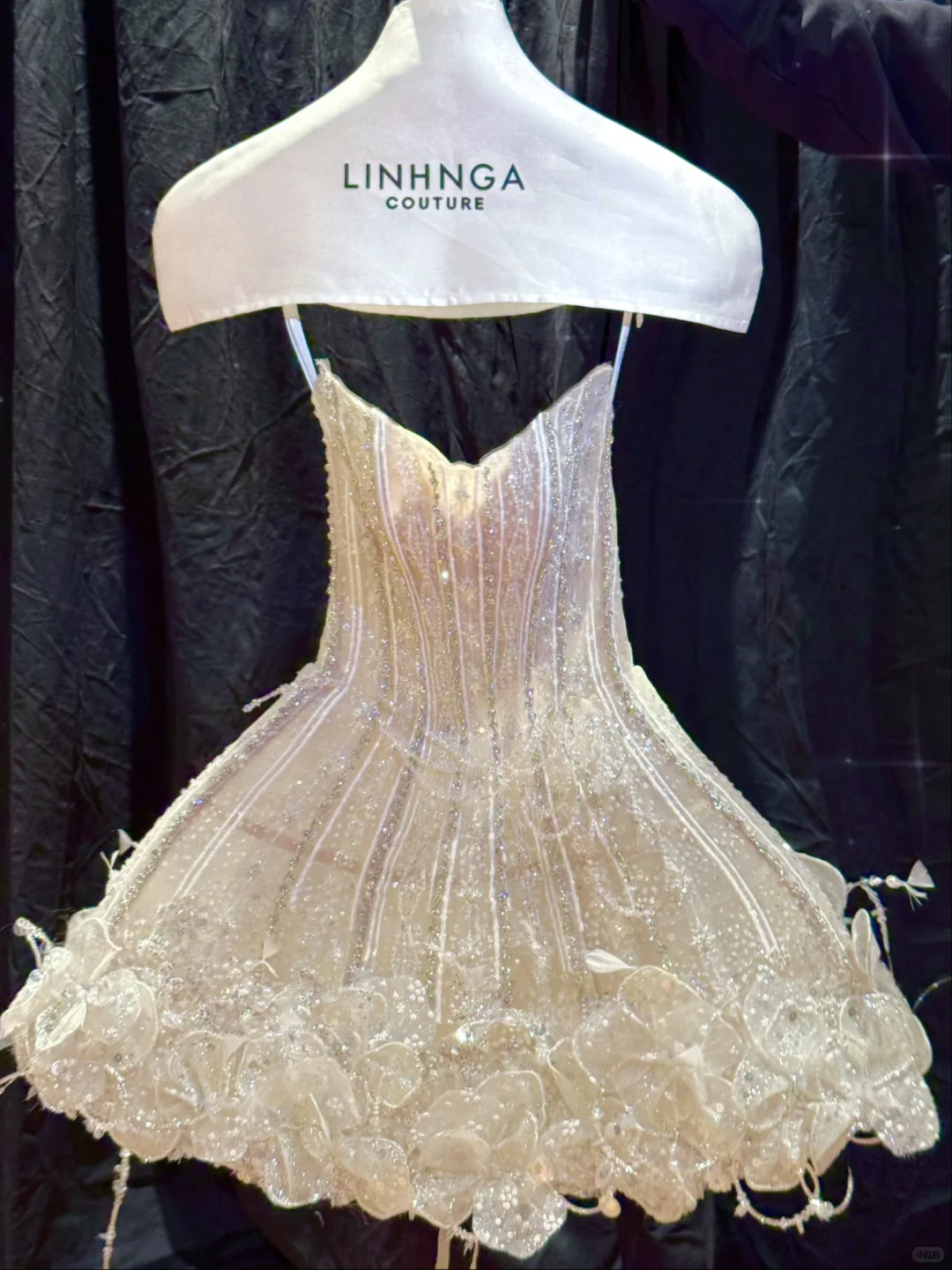 Apricot Strapless Diamond Waist Slim Fit Puffy Skirt Homecoming Dress R4172