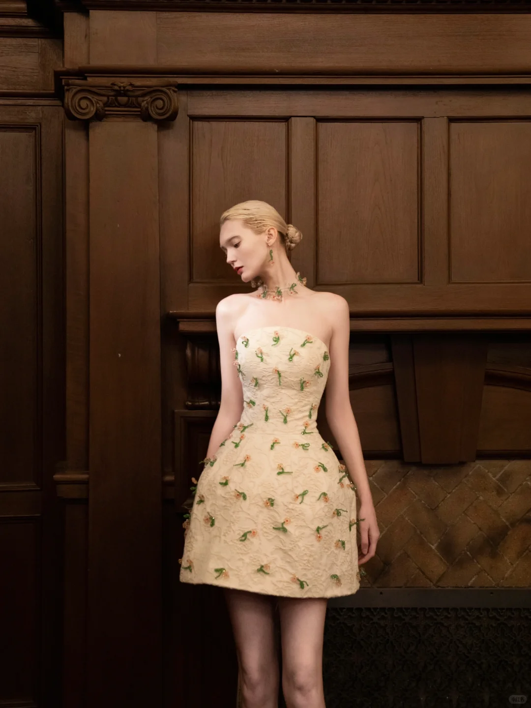 Apricot tube top fresh grass flower waist puffy princess skirt homecoming dress R4203