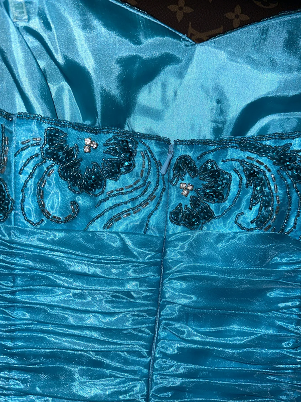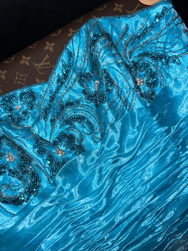Azure blue strapless fitted waist elegant fairy long ball gown R6899