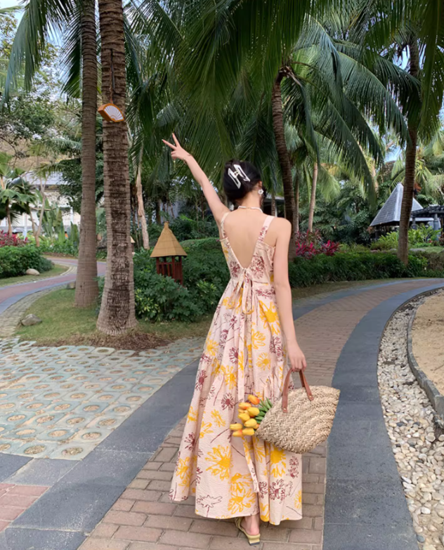 Beach dress for photo shoot, suspender dress with bow back, holiday style R1620