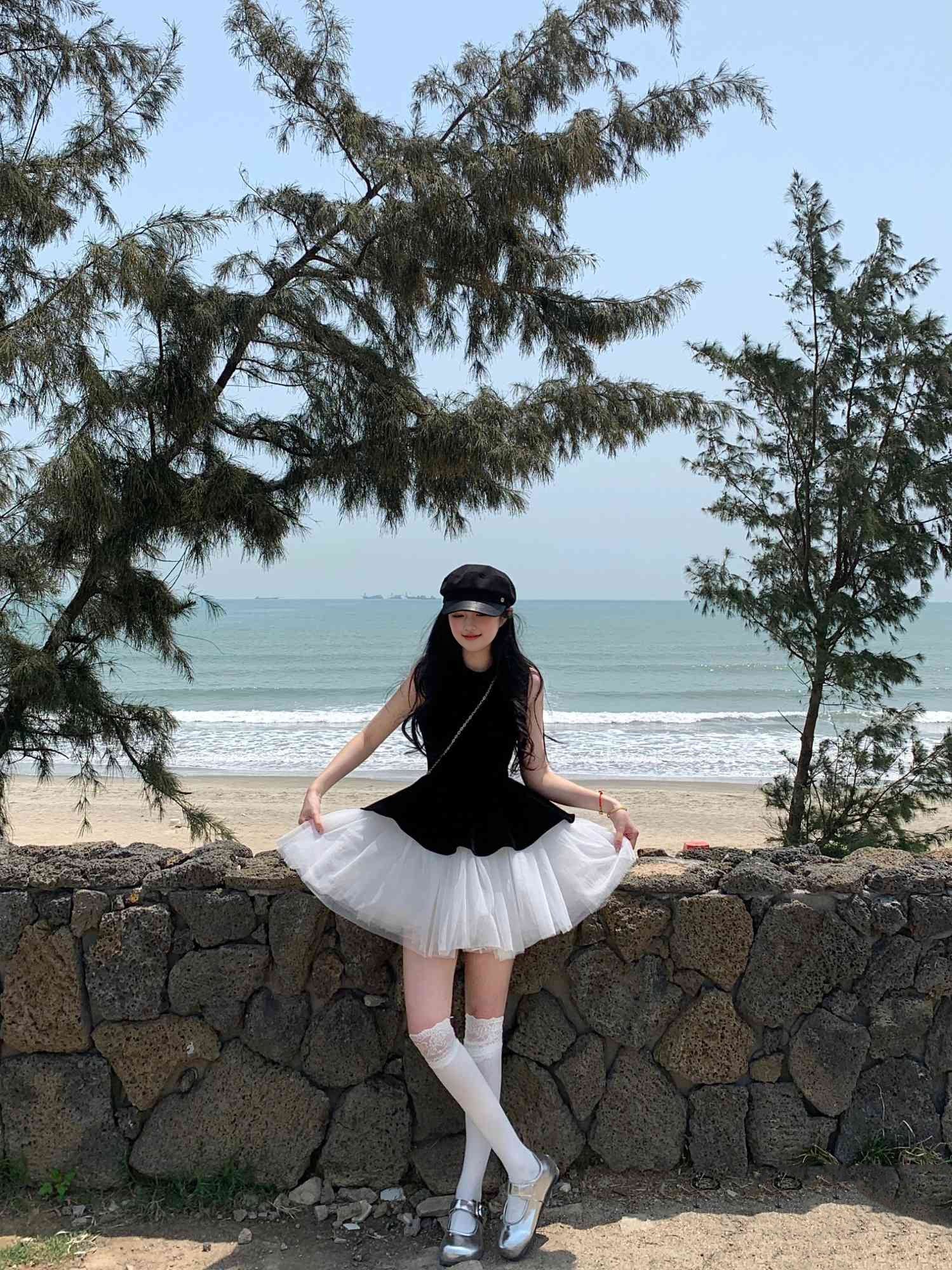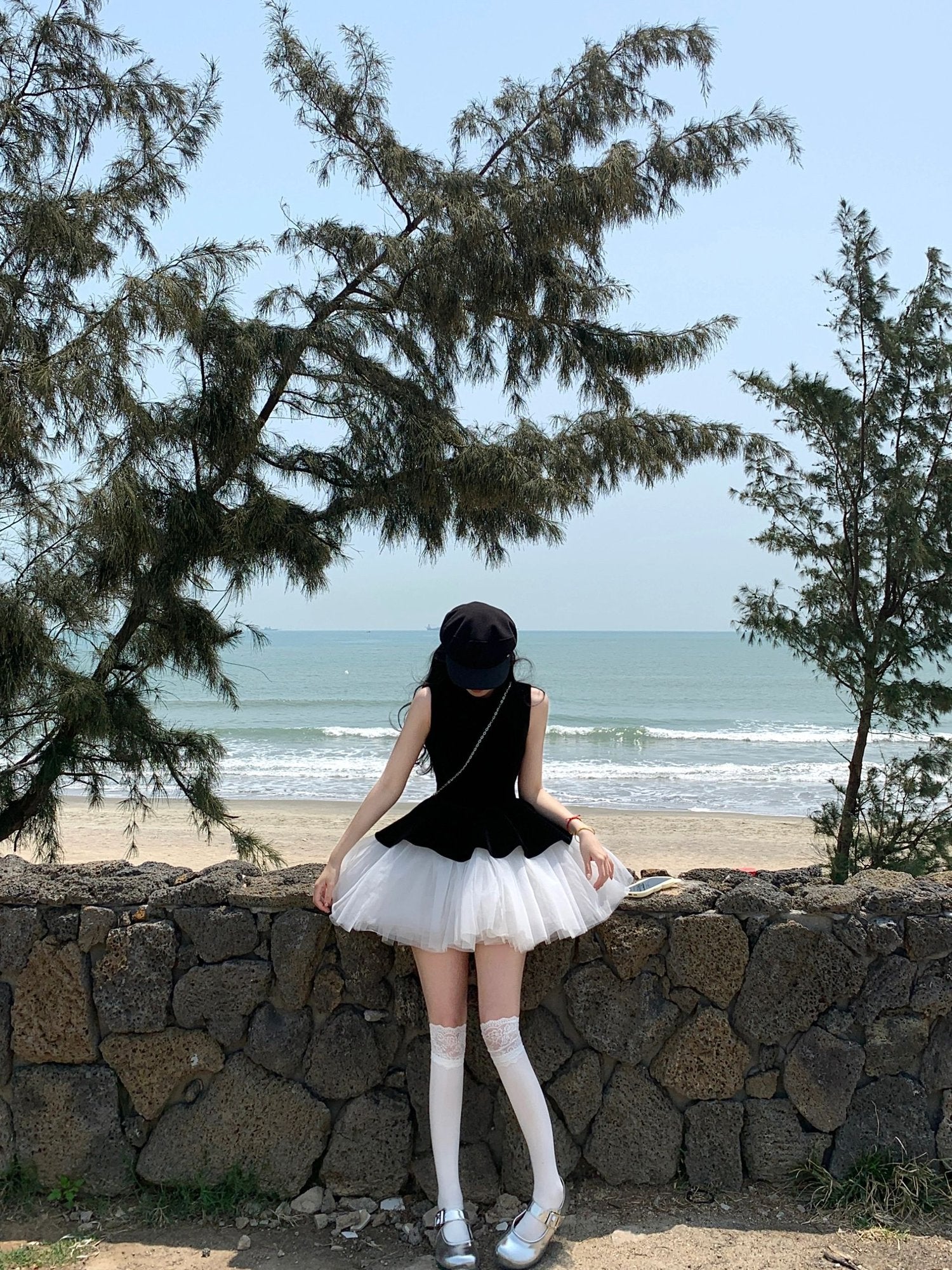 Black sleeveless vest dress temperament waist puffy short skirt R0545