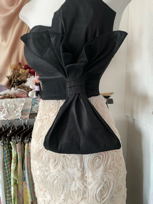 Black strapless fitted waist apricot fishtail bodycon long dress, ball gown R6338