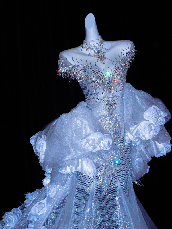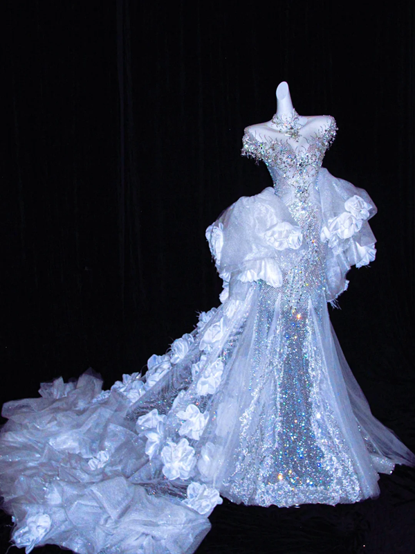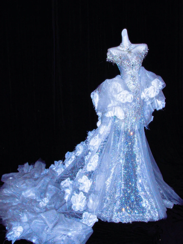 Blue sequined slim waist sexy elegant long skirt, prom dress R5691