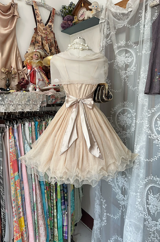 Light Brown Vintage Backless Fitted A-Line Mini Dress, Ball Gown R6212