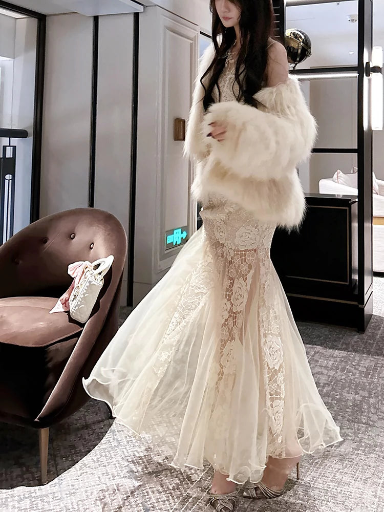 elegant rose lace mermaid party dress S6145