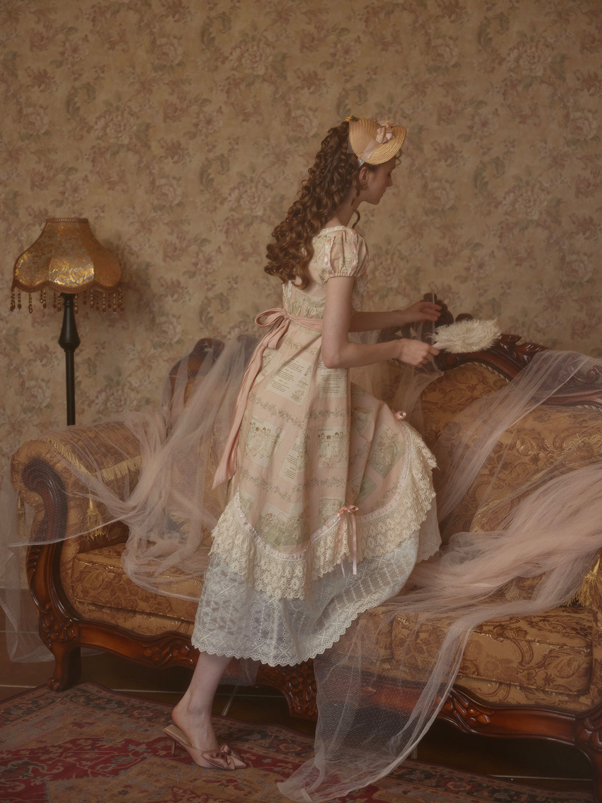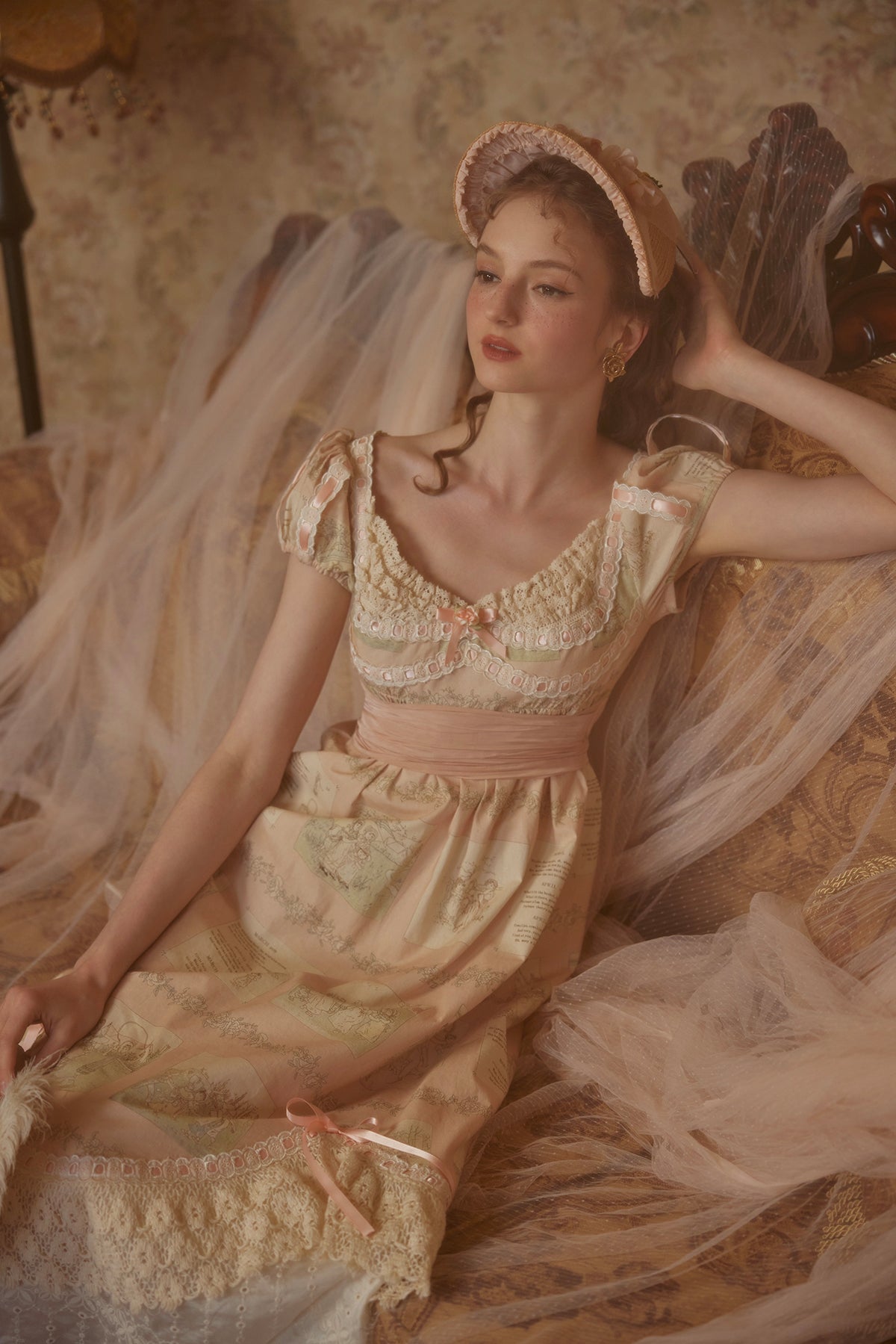 French court style empire dress printed lace dress cotton homecoming dress R5116