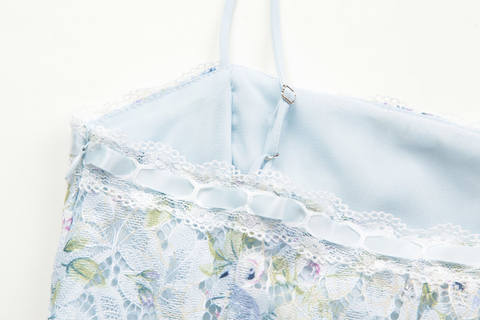 French style fresh straps slim printed lace tube top dress sweet hot girl showing figure short hip skirt R3097