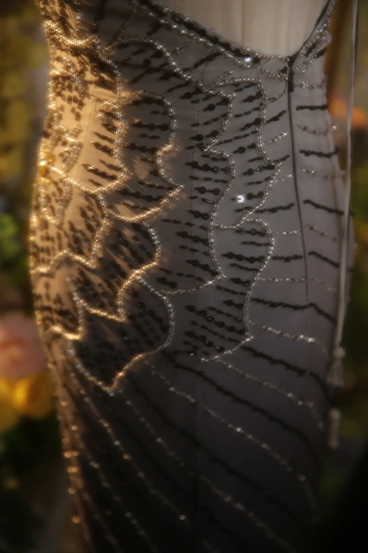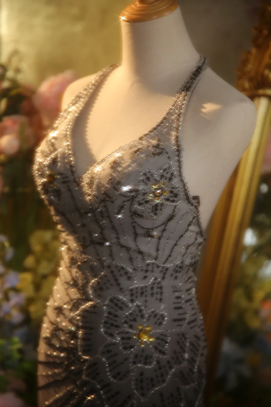 Gray gradient halter-neck fitted waist sexy long ball gown R7263