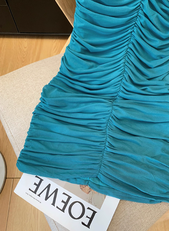 Green rich lady v-neck tube top dress female temperament dress backless sexy short hip skirt R3950