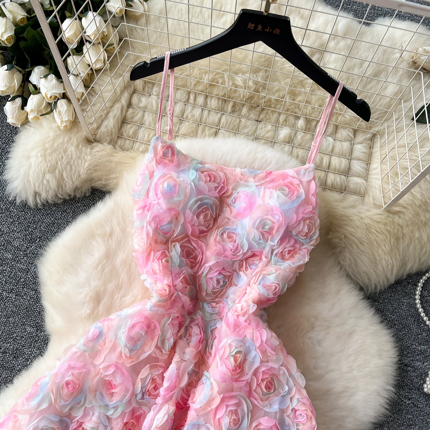 High-end dinner party dress heavy three-dimensional rose flower waist suspender dress R2221