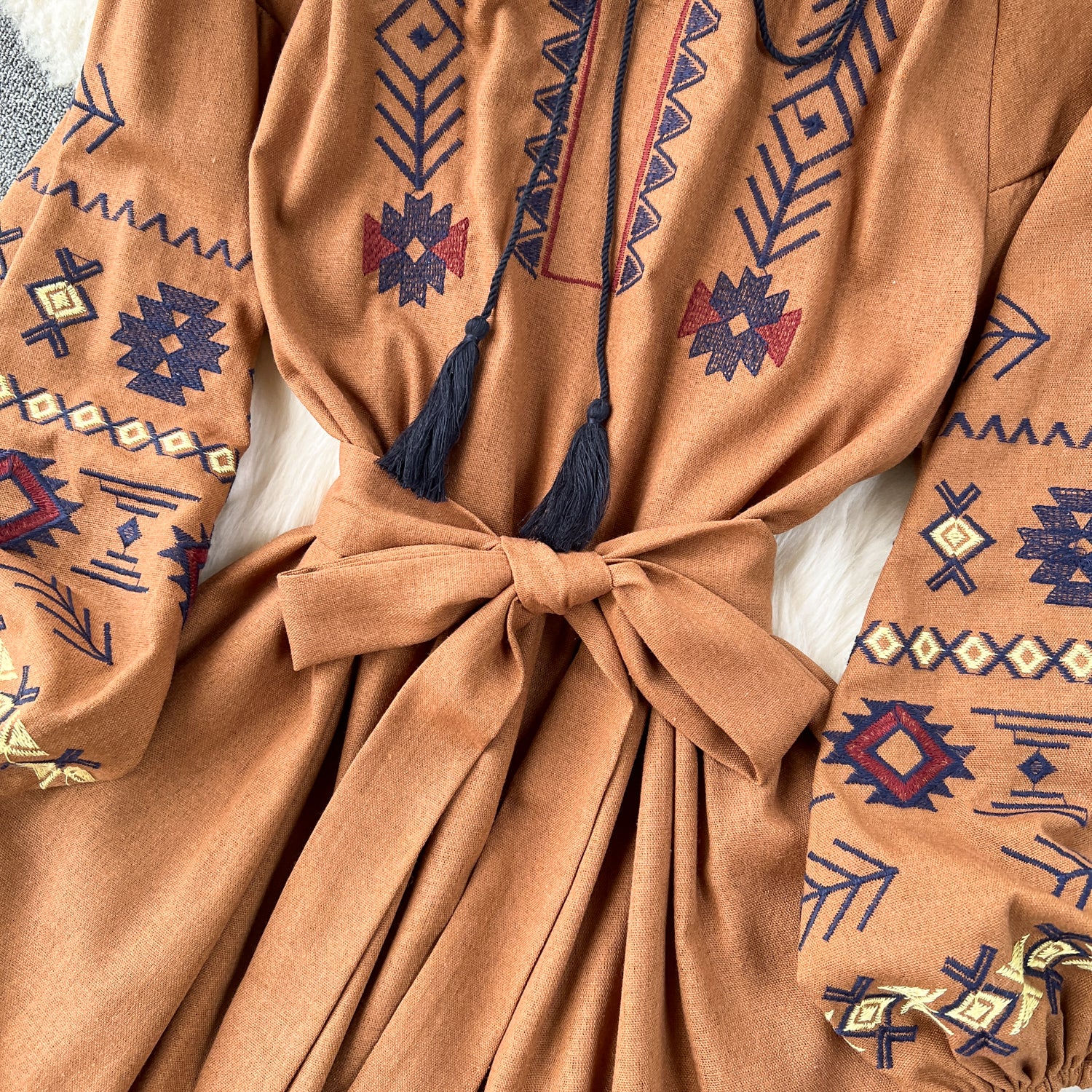 Holiday style dress outfit sweet and stylish embroidery loose waist long skirt R2331