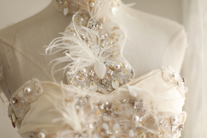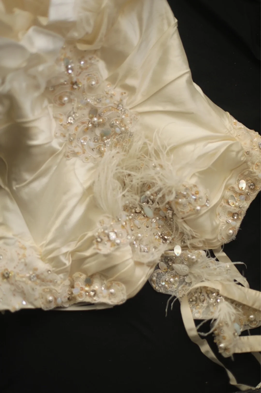 Ivory white strapless beaded fitted waist slim-fitting cake skirt long ball gown R6701
