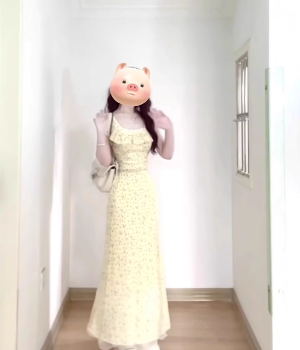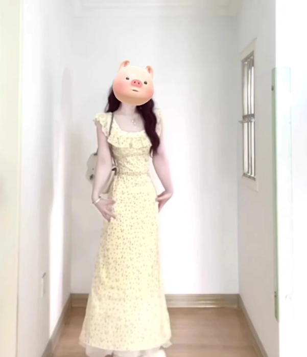 Tea break French yellow floral dress gentle temperament beautiful waist slim hip skirt R0449